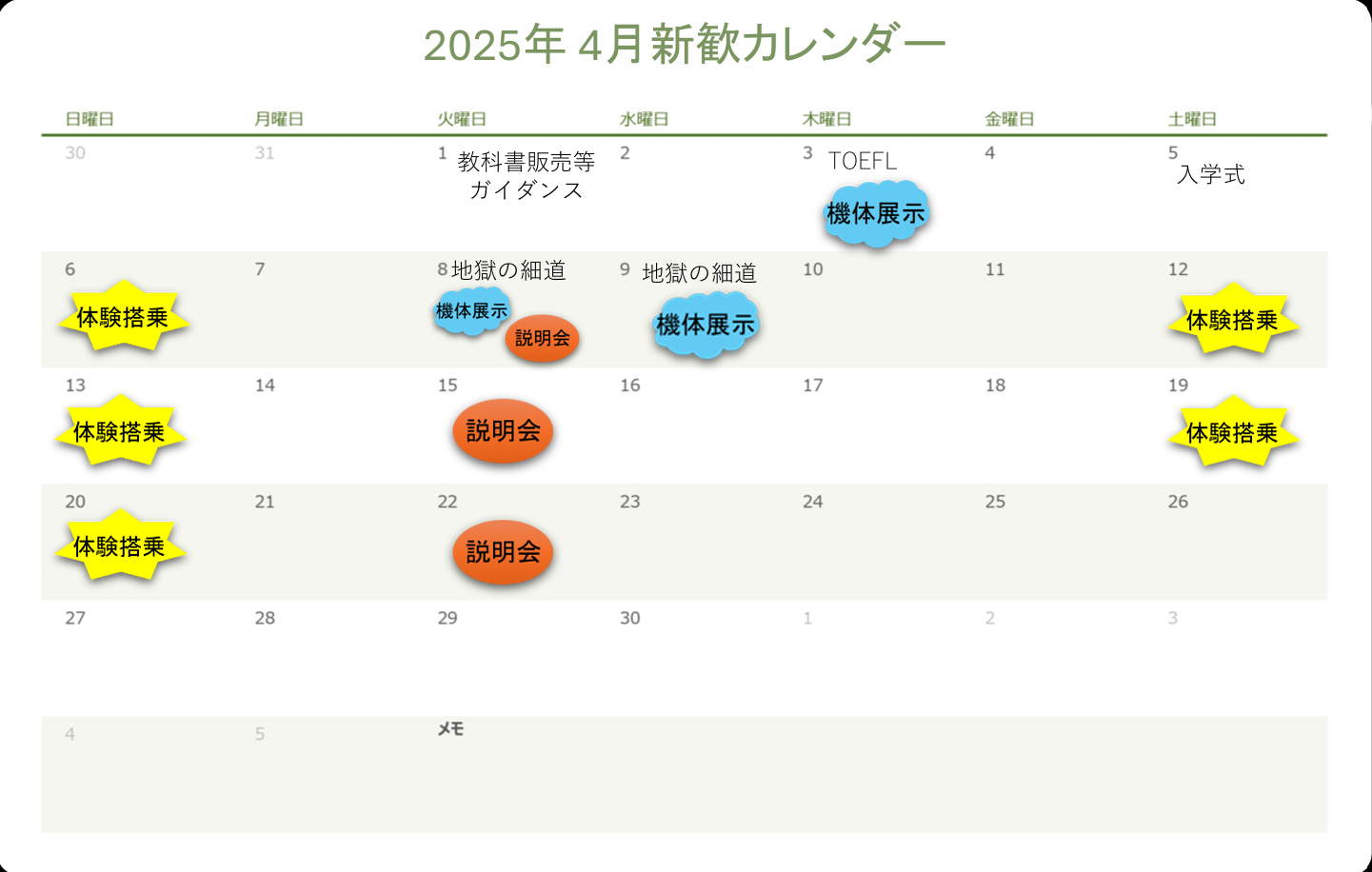 2025年度の体験搭乗予定 : 主に4月の土日での開催です。最新情報はLINEやXにて!