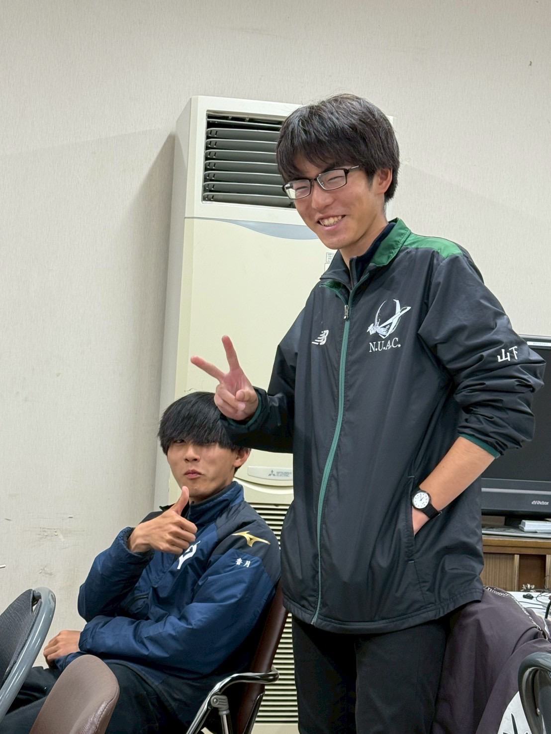 他己紹介: 夏合宿ではウィンブレを着てきたのに、11月に半袖を着てきて「寒くない」と言うなど理解しがたい一面を持っている。名大同期で1番飛んでいる。1つのことについて話していると、気付けば話題が10ぐらいに増えている。同期を代表して会計養成となるも、金が無くて詰みかけた過去がある。